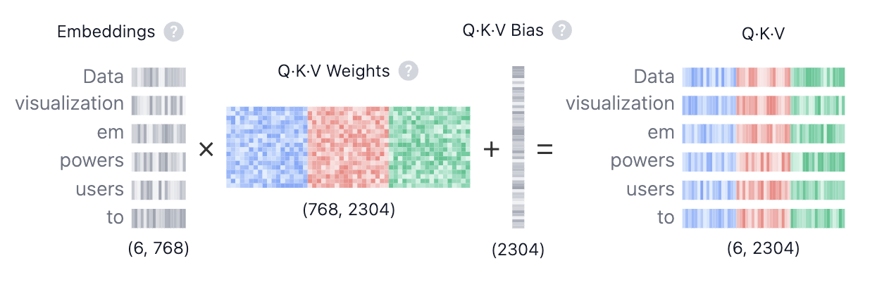 By using these QKV values, the model can calculate attention scores, which determine how much focus each token should receive when generating predictions.