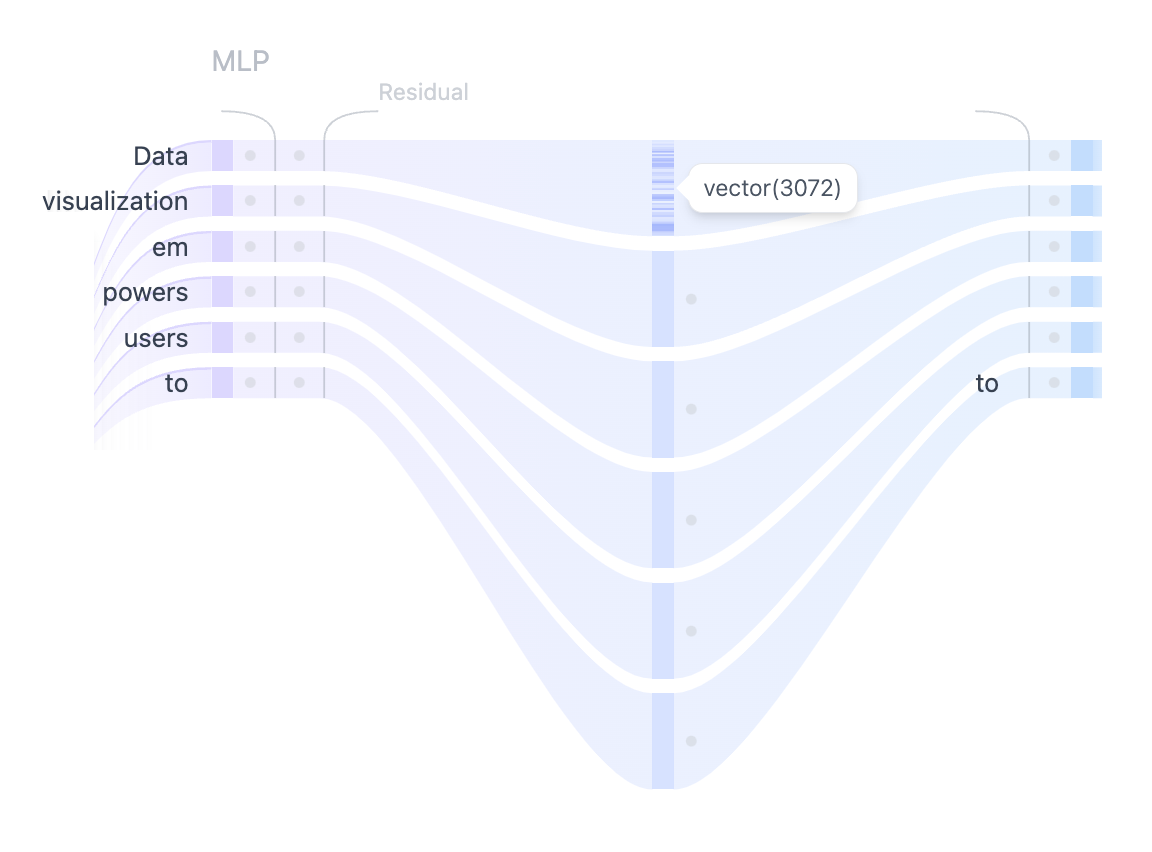 - MLP (Multilayer Perceptron) Layer, a feed-forward network that operates on each token independently. While the goal of the attention layer is to route information between tokens, the goal of the MLP is to refine each token's representation.